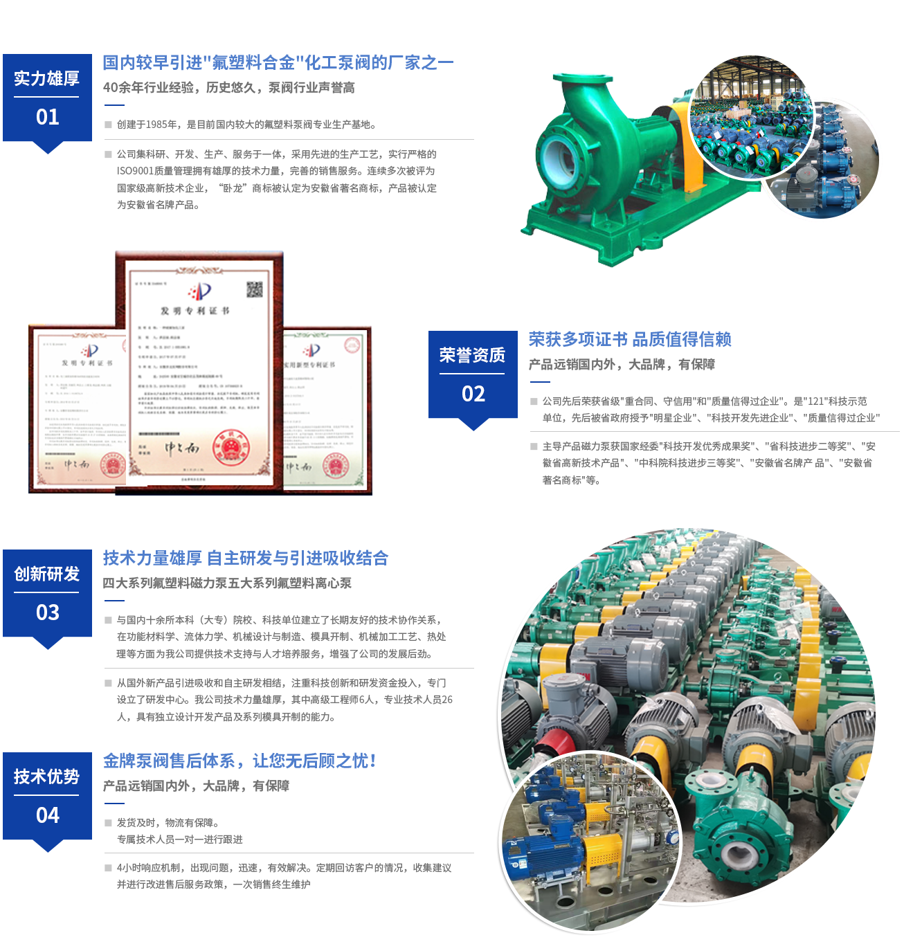 ??安徽臥龍泵閥股份有限公司前身涇縣氟塑料制品廠創(chuàng)建于1985年,是國內(nèi)較早引進中科院上海有機化學研究所專利材料——"氟塑料合金",并以此耐腐蝕材料專業(yè)生產(chǎn)制造化工泵、閥、襯氟管道等產(chǎn)品的企業(yè)。公司經(jīng)過歷次的改制變革,2015年更名為安徽臥龍泵閥股份有限公司。